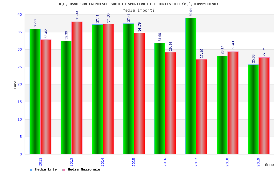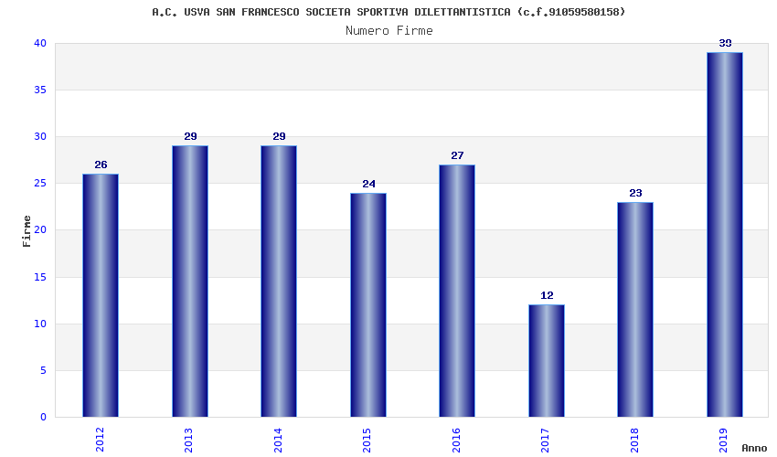 | Anno | Firme | Importi | Media | Naz. | Reg. | Prov. | Comu. |