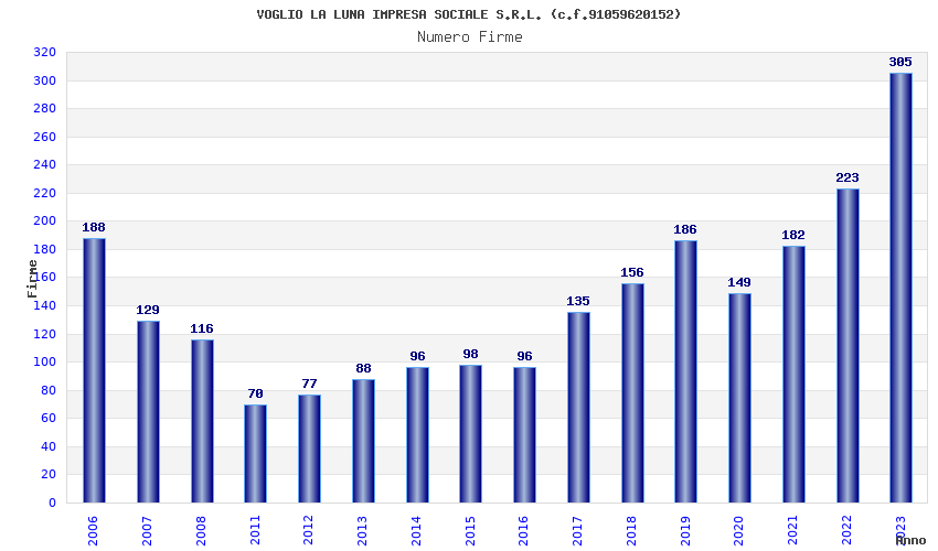 | Anno | Firme | Importi | Media | Naz. | Reg. | Prov. | Comu. |