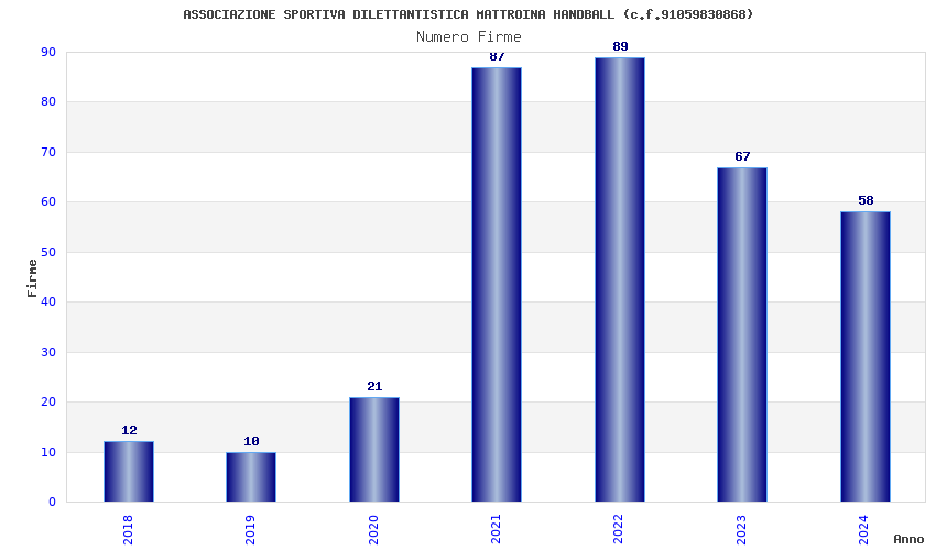 | Anno | Firme | Importi | Media | Naz. | Reg. | Prov. | Comu. |