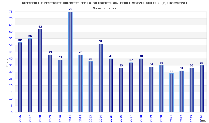 | Anno | Firme | Importi | Media | Naz. | Reg. | Prov. | Comu. |