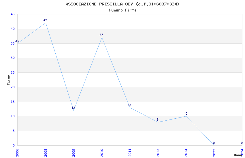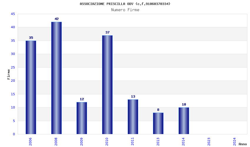 | Anno | Firme | Importi | Media | Naz. | Reg. | Prov. | Comu. |