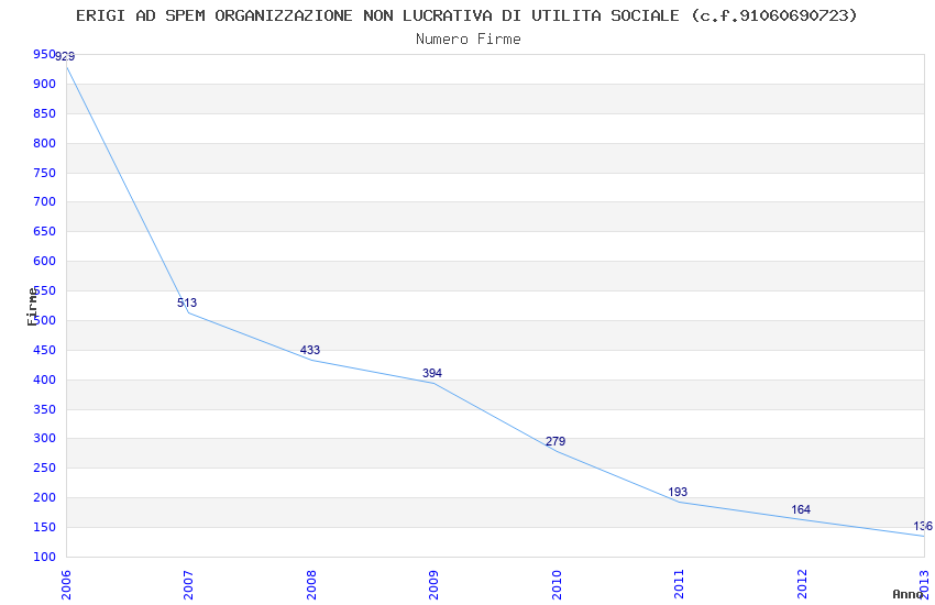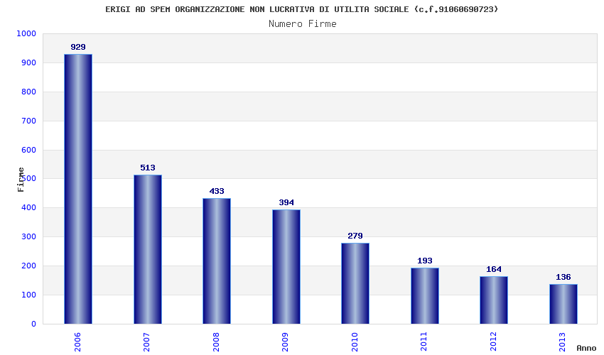 | Anno | Firme | Importi | Media | Naz. | Reg. | Prov. | Comu. |