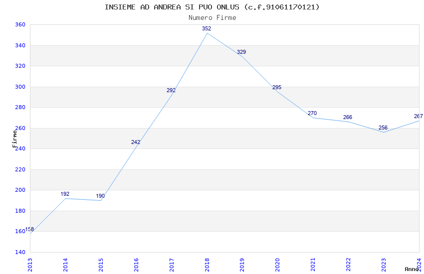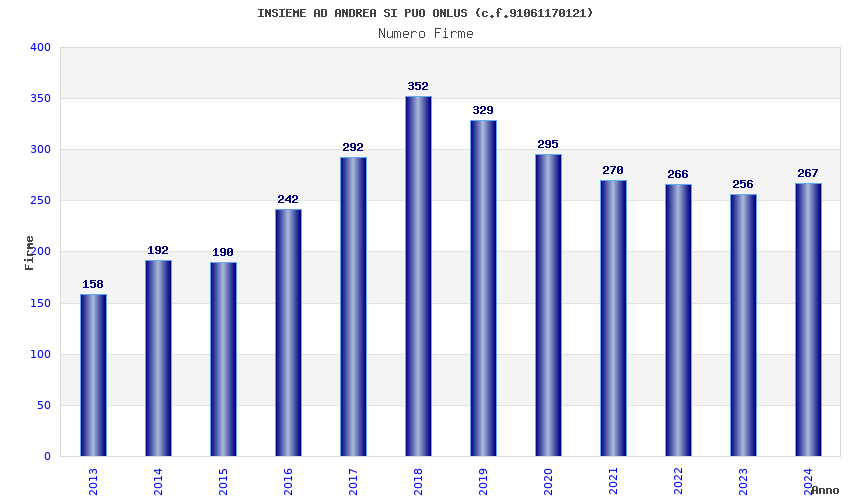 | Anno | Firme | Importi | Media | Naz. | Reg. | Prov. | Comu. |