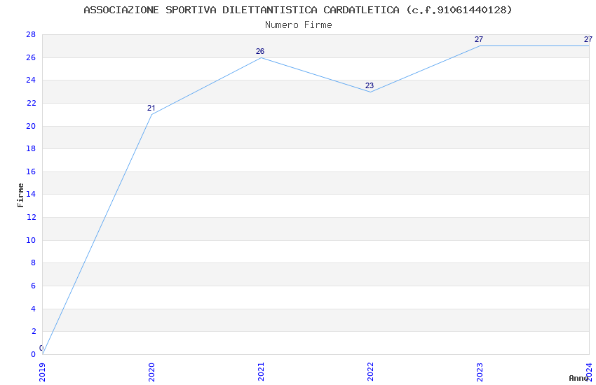 | 2023 | 27 | 1.369,55 | 50,72 | 30.404 | 6.202 | 488 | 5 |