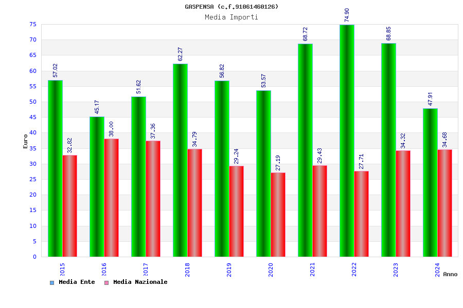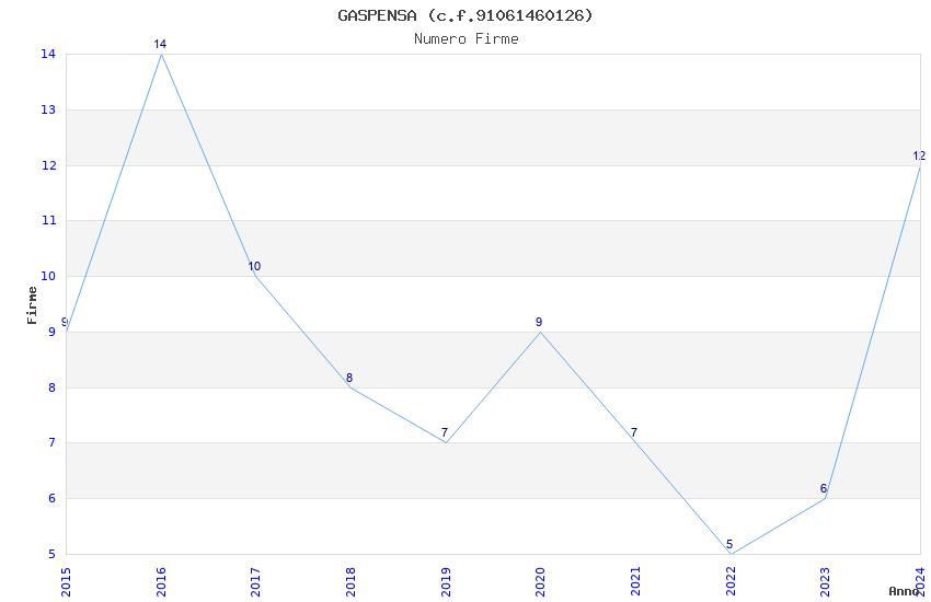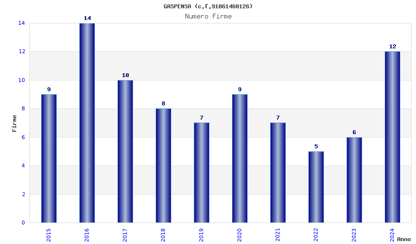 | Anno | Firme | Importi | Media | Naz. | Reg. | Prov. | Comu. |