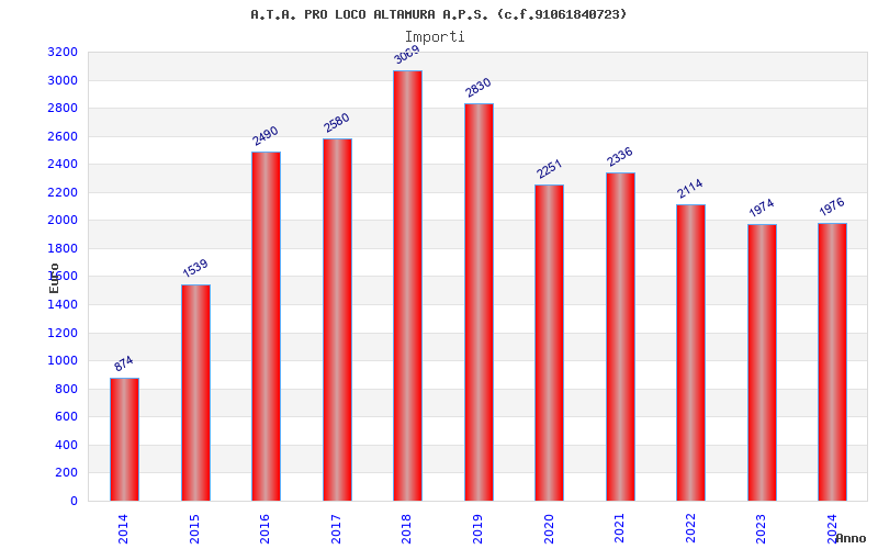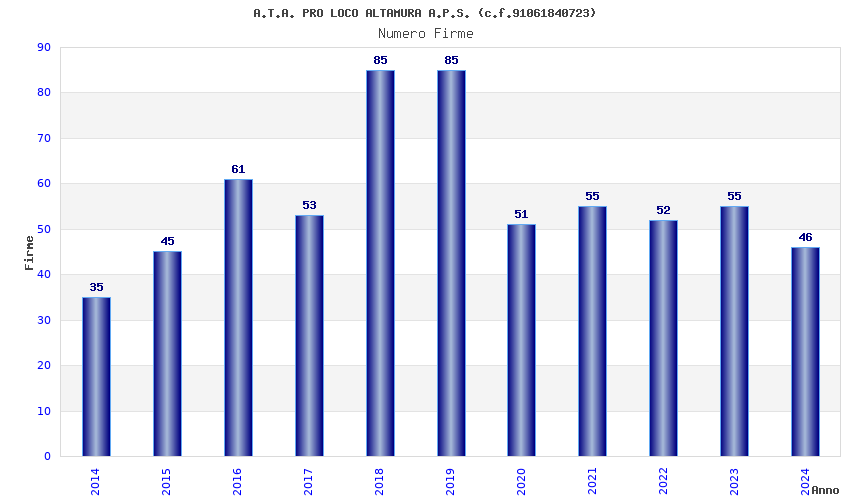 | Anno | Firme | Importi | Media | Naz. | Reg. | Prov. | Comu. |