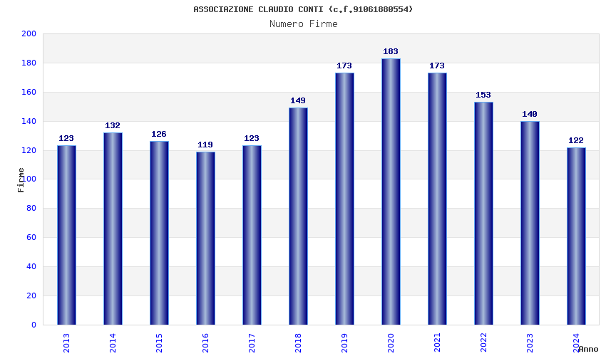 | Anno | Firme | Importi | Media | Naz. | Reg. | Prov. | Comu. |