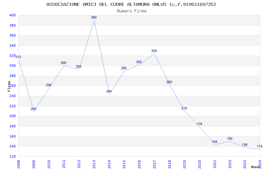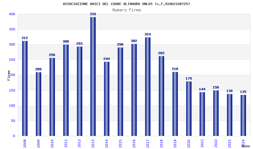 | Anno | Firme | Importi | Media | Naz. | Reg. | Prov. | Comu. |