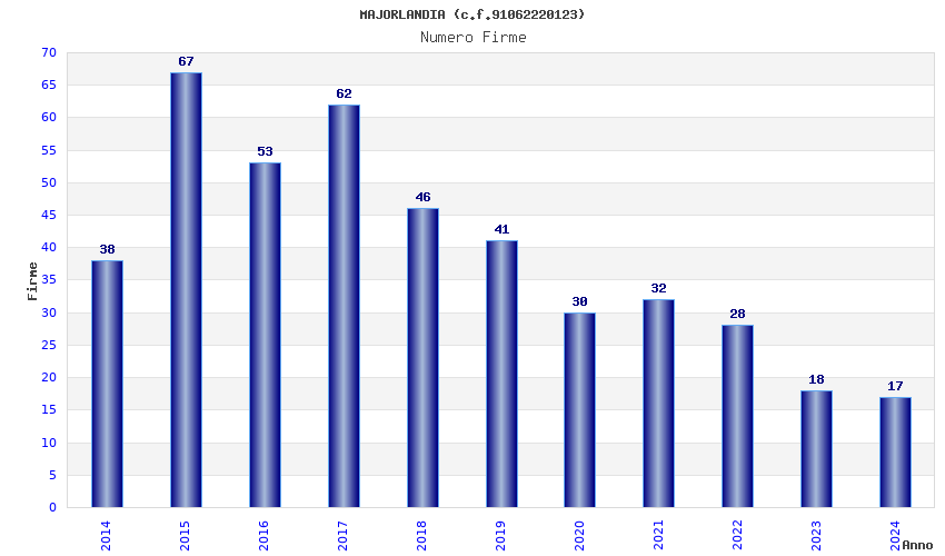 | Anno | Firme | Importi | Media | Naz. | Reg. | Prov. | Comu. |