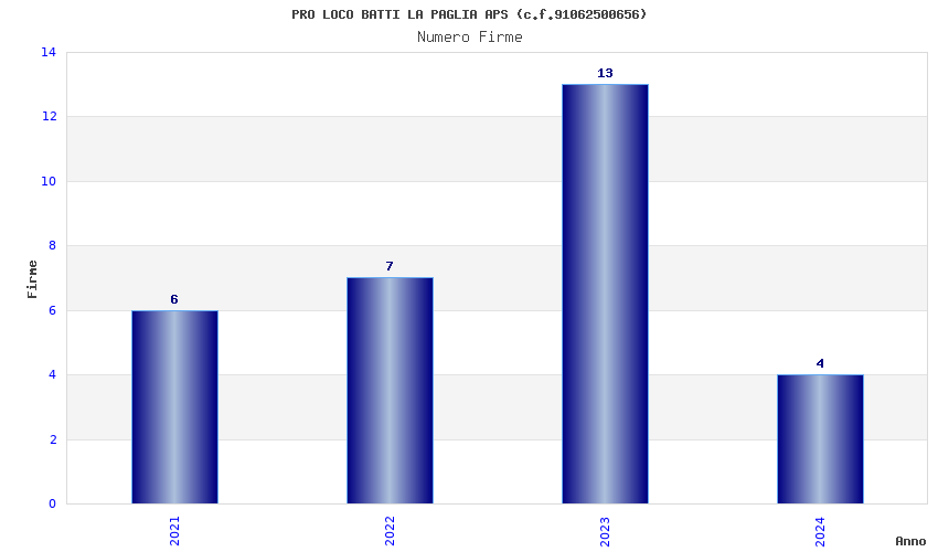 | Anno | Firme | Importi | Media | Naz. | Reg. | Prov. | Comu. |