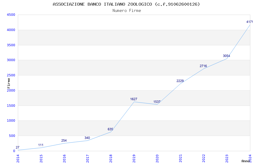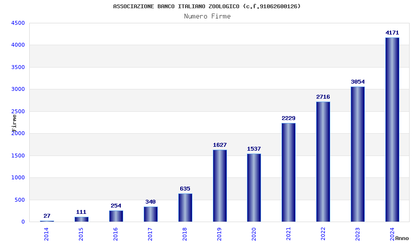 | Anno | Firme | Importi | Media | Naz. | Reg. | Prov. | Comu. |