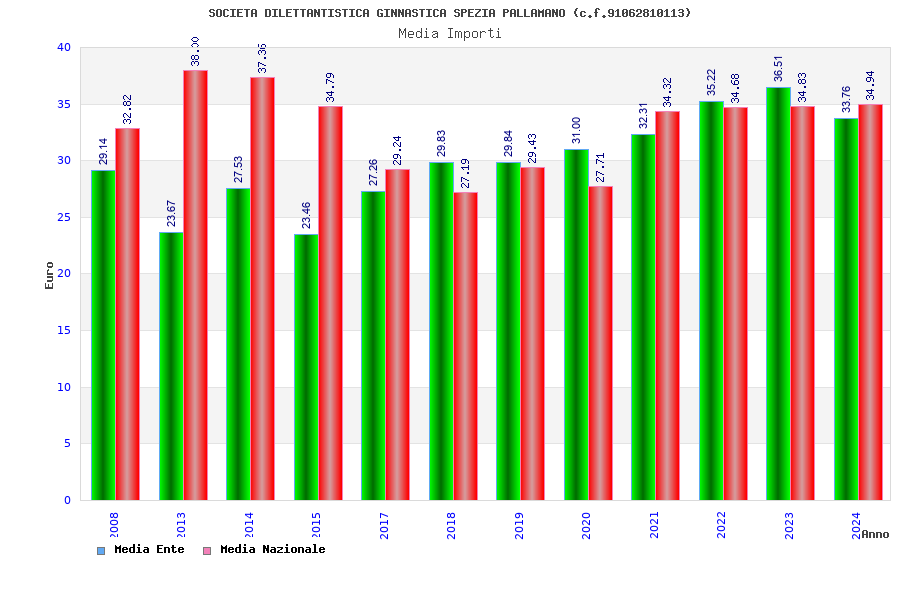 | Anno | Firme | Importi | Media | Naz. | Reg. | Prov. | Comu. |