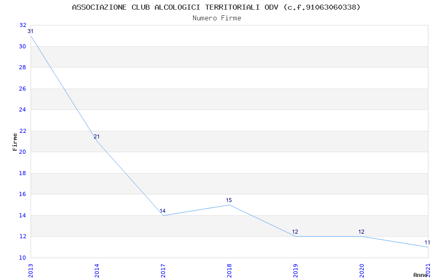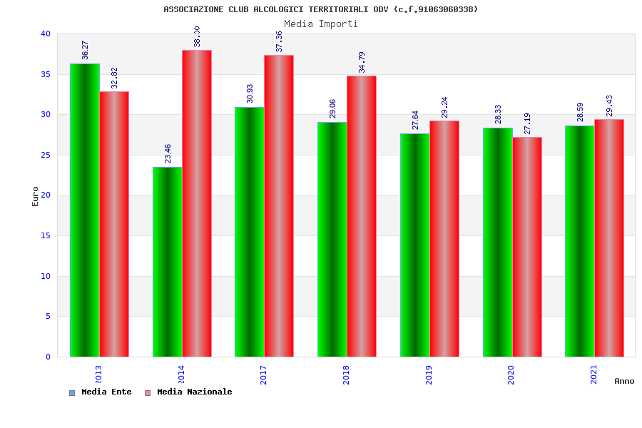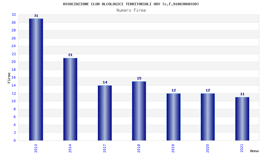 | Anno | Firme | Importi | Media | Naz. | Reg. | Prov. | Comu. |