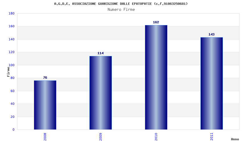 | Anno | Firme | Importi | Media | Naz. | Reg. | Prov. | Comu. |