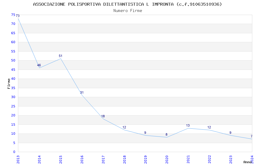 | 2013 | 73 | 2.340,00 | 32,05 | 16.524 | 387 | 94 | 30 |