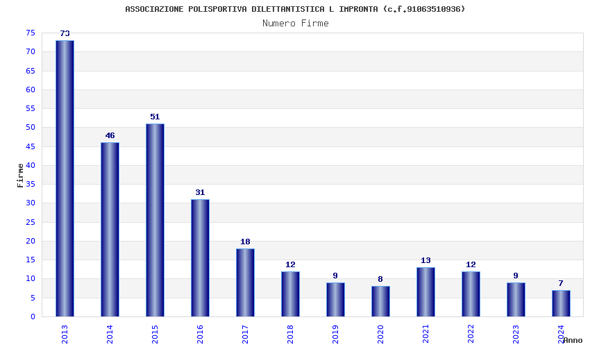 | Anno | Firme | Importi | Media | Naz. | Reg. | Prov. | Comu. |