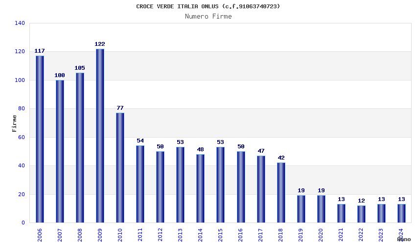 | Anno | Firme | Importi | Media | Naz. | Reg. | Prov. | Comu. |