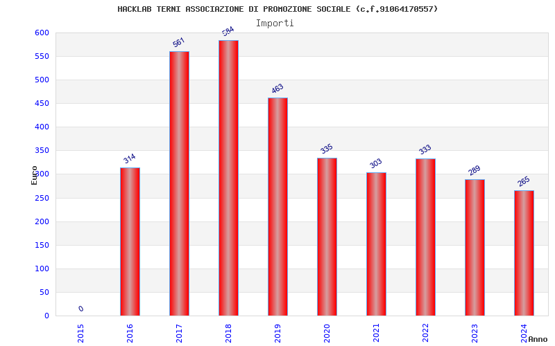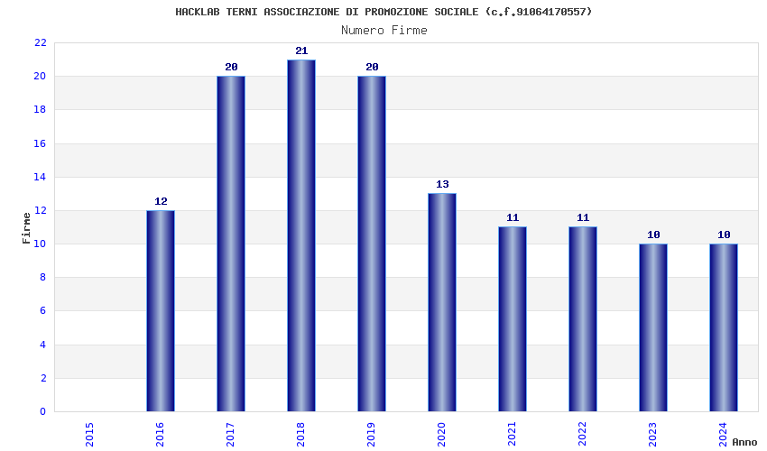 | Anno | Firme | Importi | Media | Naz. | Reg. | Prov. | Comu. |