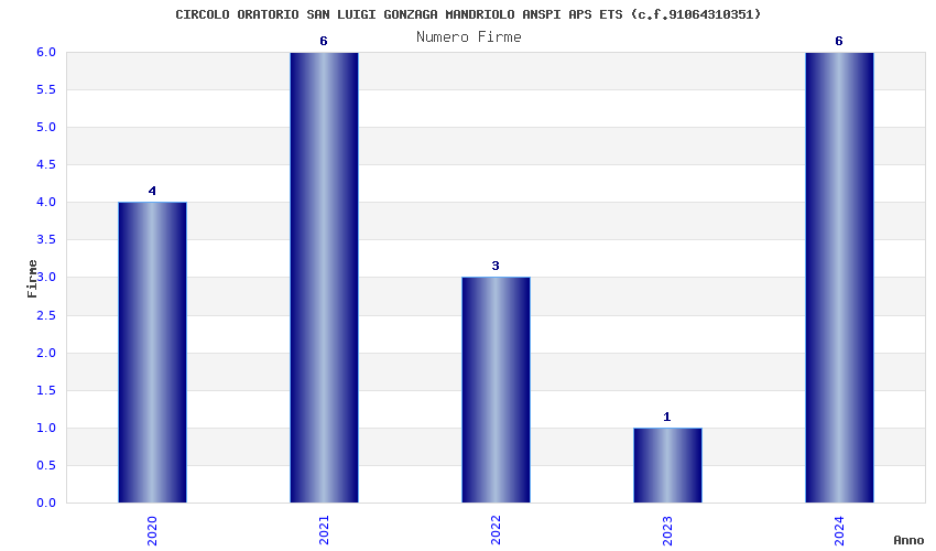 | Anno | Firme | Importi | Media | Naz. | Reg. | Prov. | Comu. |