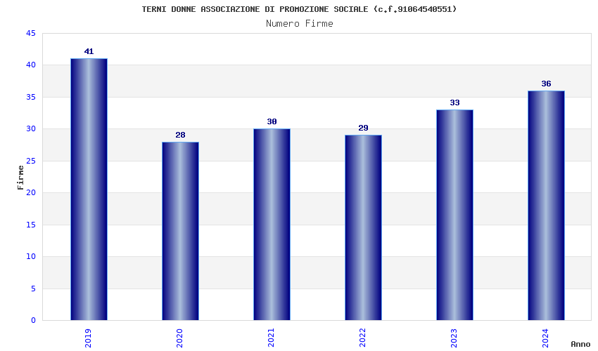 | Anno | Firme | Importi | Media | Naz. | Reg. | Prov. | Comu. |