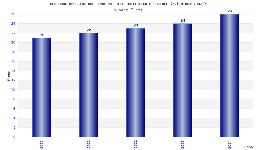 | Anno | Firme | Importi | Media | Naz. | Reg. | Prov. | Comu. |