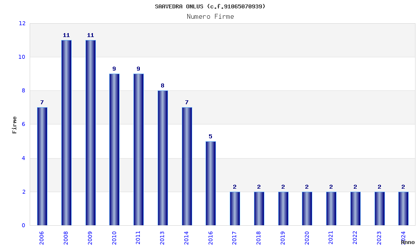 | Anno | Firme | Importi | Media | Naz. | Reg. | Prov. | Comu. |