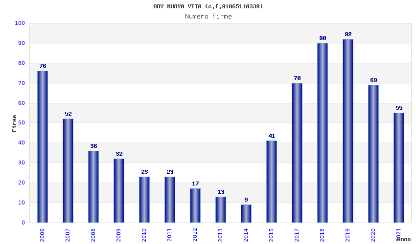 | Anno | Firme | Importi | Media | Naz. | Reg. | Prov. | Comu. |