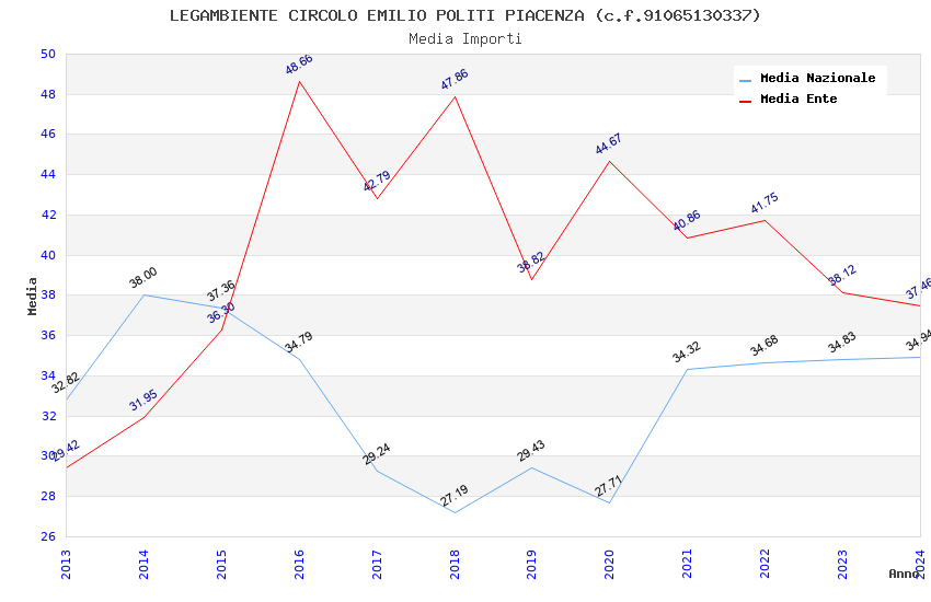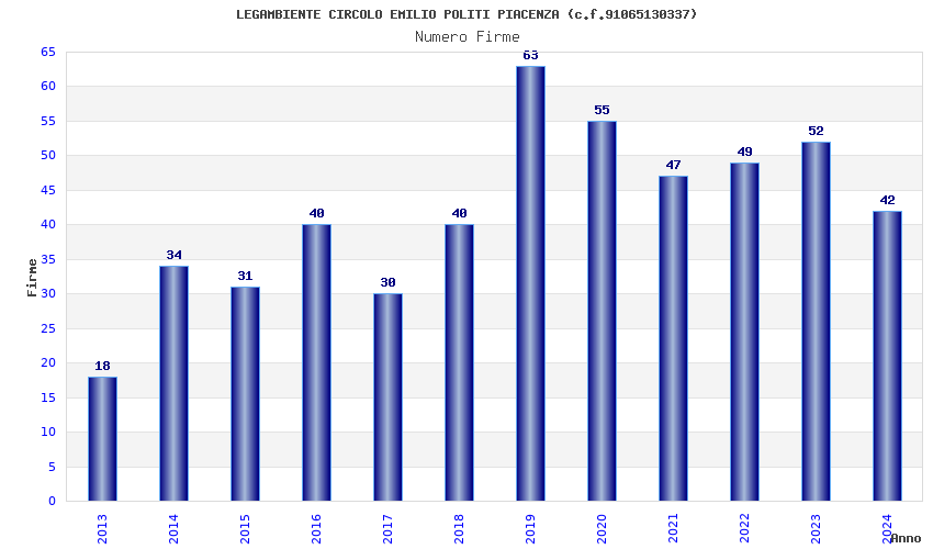 | Anno | Firme | Importi | Media | Naz. | Reg. | Prov. | Comu. |