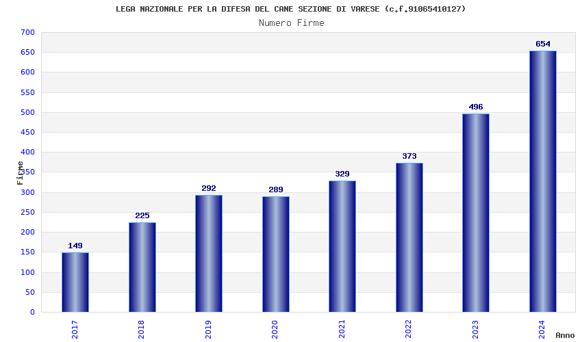 | Anno | Firme | Importi | Media | Naz. | Reg. | Prov. | Comu. |