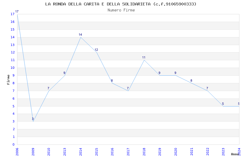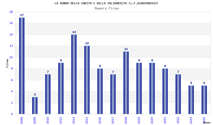 | Anno | Firme | Importi | Media | Naz. | Reg. | Prov. | Comu. |