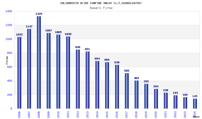 | Anno | Firme | Importi | Media | Naz. | Reg. | Prov. | Comu. |