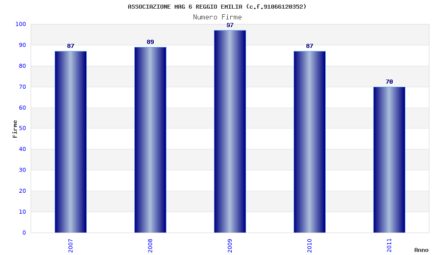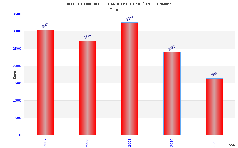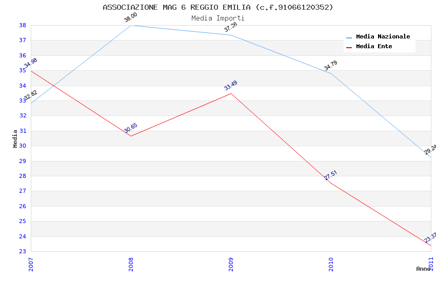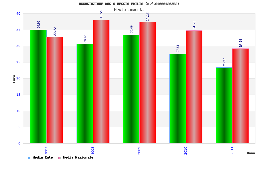 | Anno | Firme | Importi | Media | Naz. | Reg. | Prov. | Comu. |