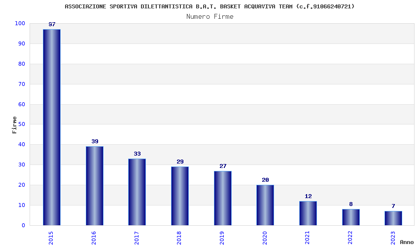 | Anno | Firme | Importi | Media | Naz. | Reg. | Prov. | Comu. |