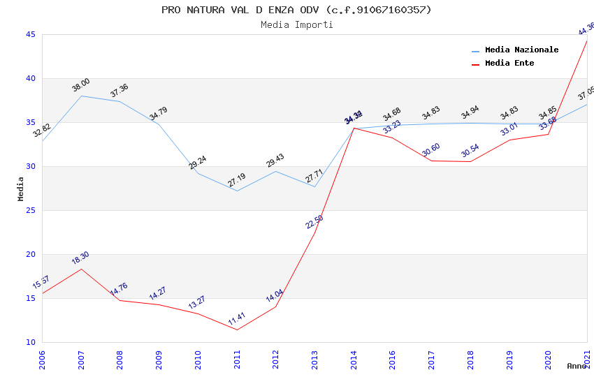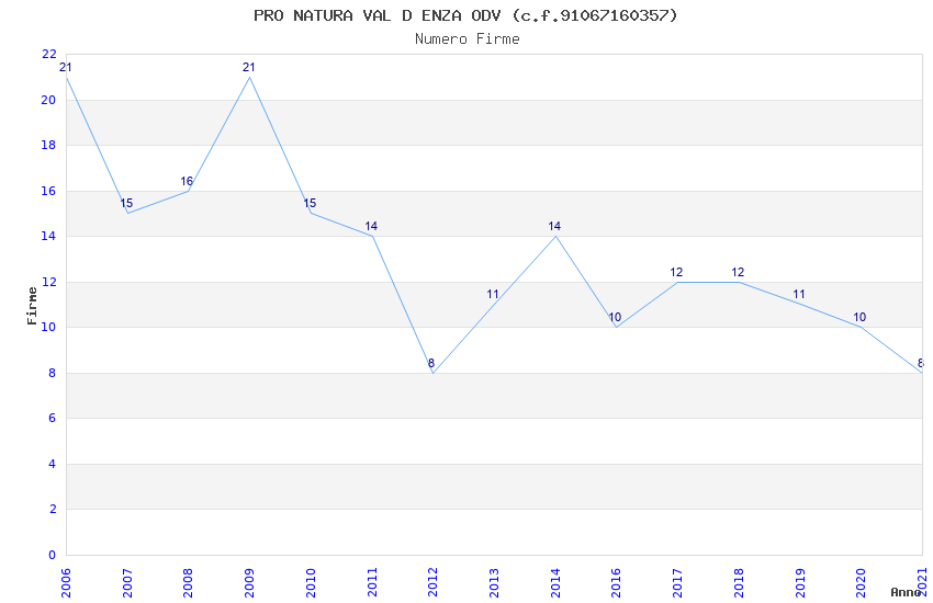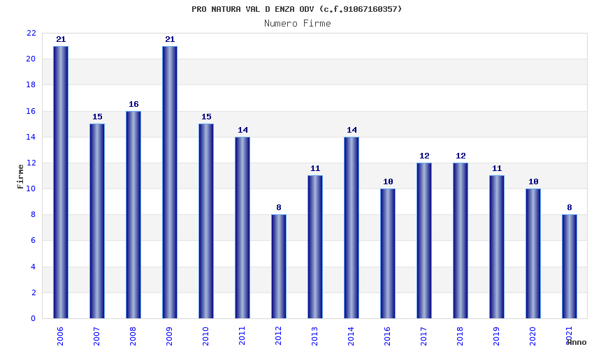 | Anno | Firme | Importi | Media | Naz. | Reg. | Prov. | Comu. |