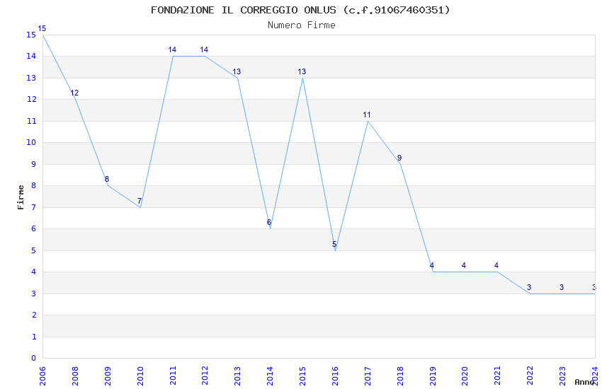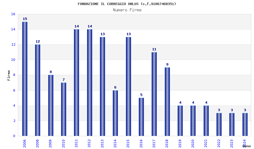 | Anno | Firme | Importi | Media | Naz. | Reg. | Prov. | Comu. |
