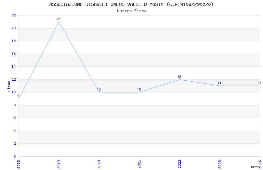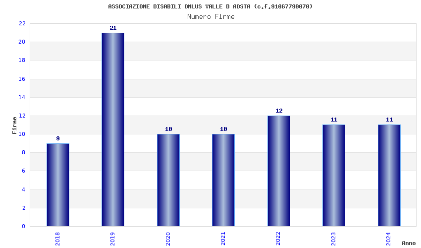 | Anno | Firme | Importi | Media | Naz. | Reg. | Prov. | Comu. |