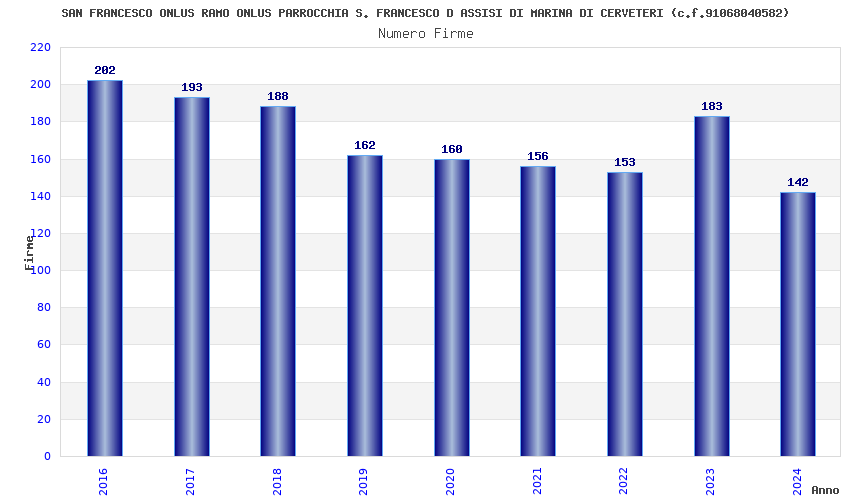 | Anno | Firme | Importi | Media | Naz. | Reg. | Prov. | Comu. |