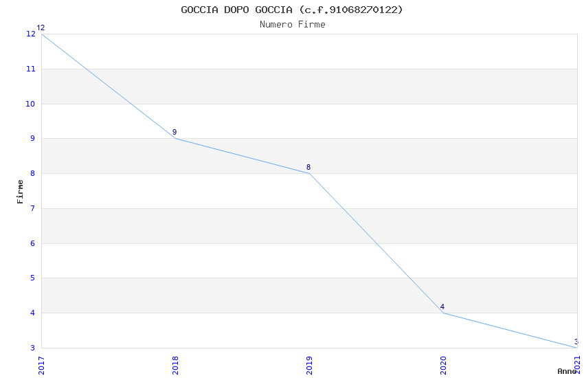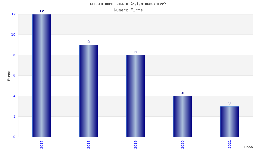 | Anno | Firme | Importi | Media | Naz. | Reg. | Prov. | Comu. |