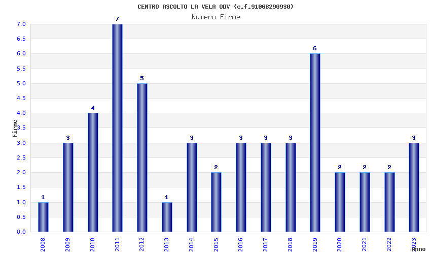 | Anno | Firme | Importi | Media | Naz. | Reg. | Prov. | Comu. |