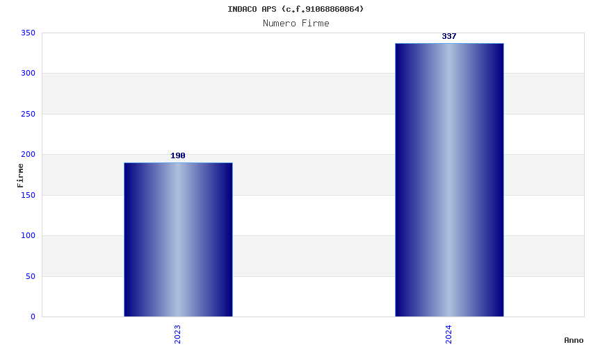 | Anno | Firme | Importi | Media | Naz. | Reg. | Prov. | Comu. |