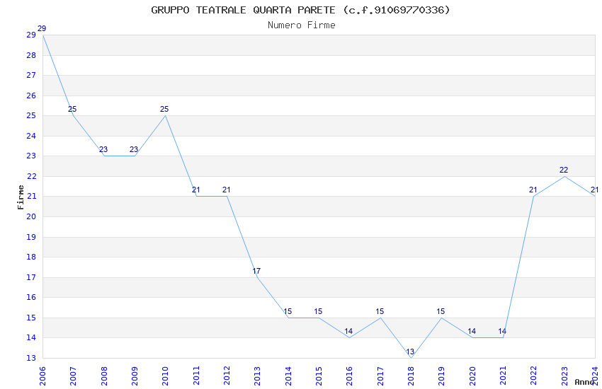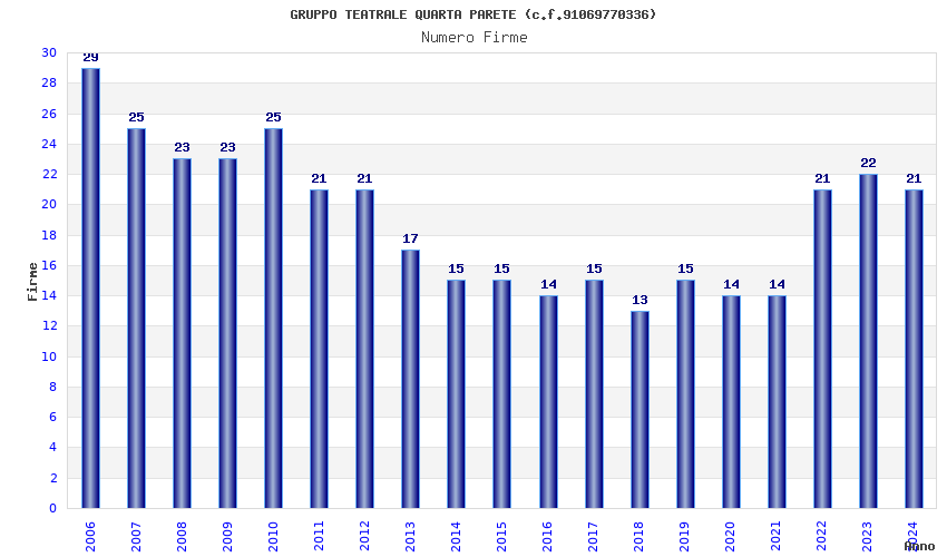 | Anno | Firme | Importi | Media | Naz. | Reg. | Prov. | Comu. |