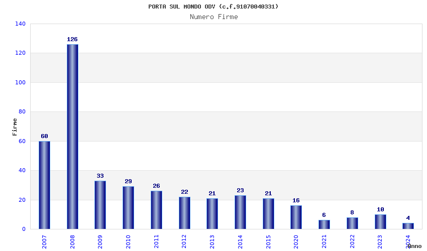 | Anno | Firme | Importi | Media | Naz. | Reg. | Prov. | Comu. |