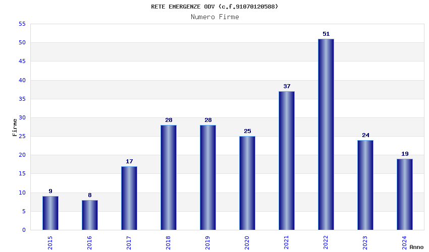 | Anno | Firme | Importi | Media | Naz. | Reg. | Prov. | Comu. |