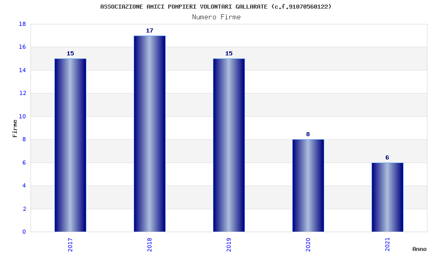 | Anno | Firme | Importi | Media | Naz. | Reg. | Prov. | Comu. |