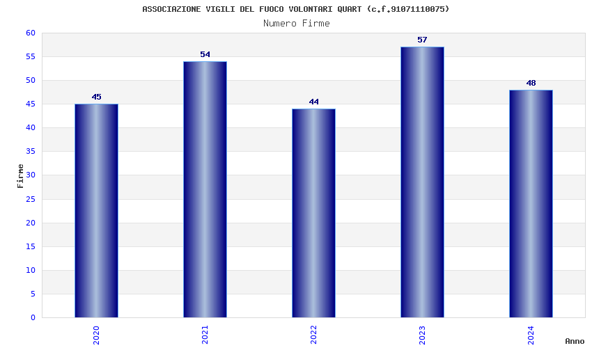 | Anno | Firme | Importi | Media | Naz. | Reg. | Prov. | Comu. |