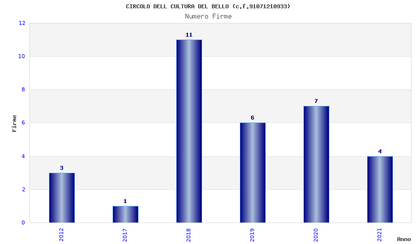 | Anno | Firme | Importi | Media | Naz. | Reg. | Prov. | Comu. |