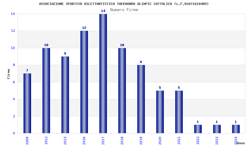 | Anno | Firme | Importi | Media | Naz. | Reg. | Prov. | Comu. |
