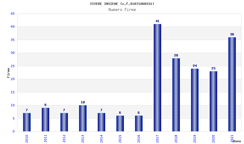 Anno Firme Importi Media Naz. Reg. Prov. Comu.