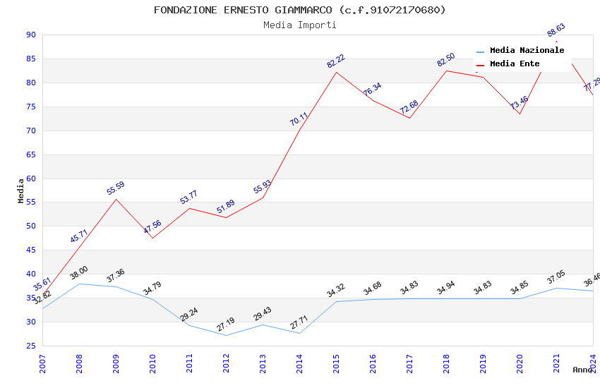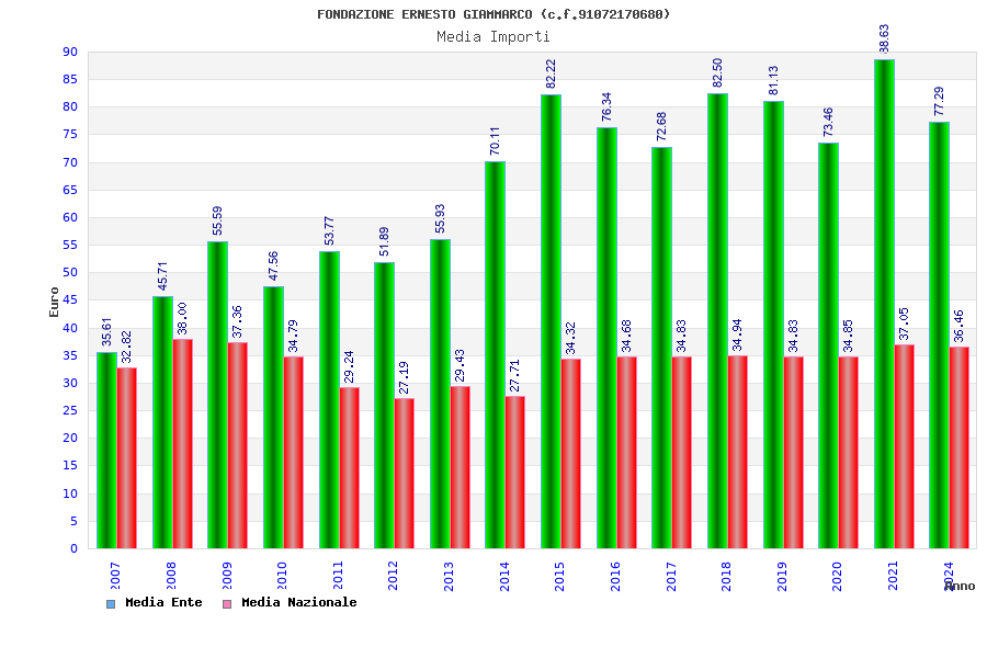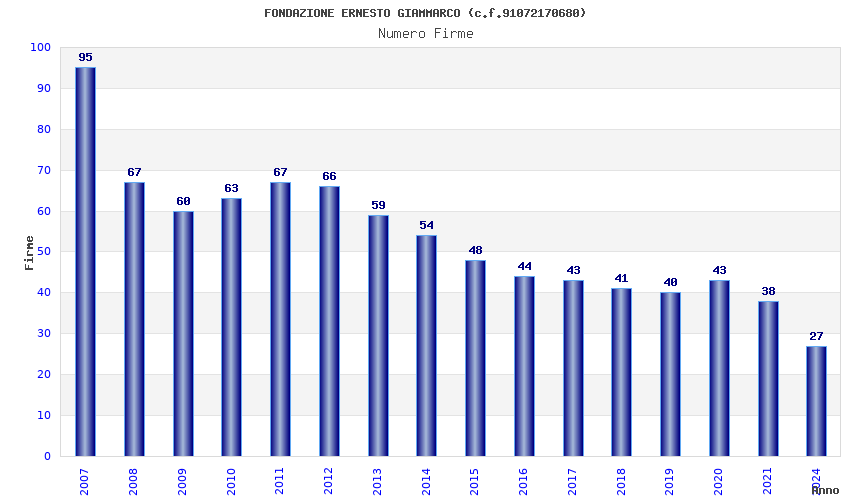 | Anno | Firme | Importi | Media | Naz. | Reg. | Prov. | Comu. |