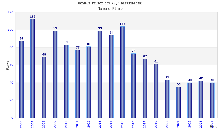 | Anno | Firme | Importi | Media | Naz. | Reg. | Prov. | Comu. |